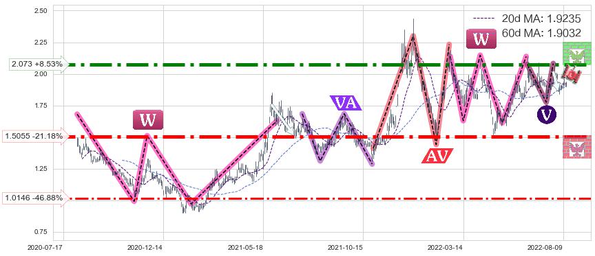 ♘ 阻力价格位2.073,可信任强度94.77%,距离最后交易2022-08-12形成的收盘价格1.9100相差 +8.53%