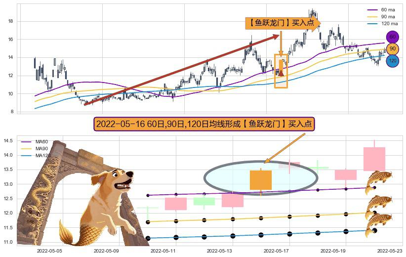 形态多维评估: ⚀ 2022-05-16日显现 60日-90日-120日均线 【鱼跃龙门】买入点 看多信号,后市看涨,买入
