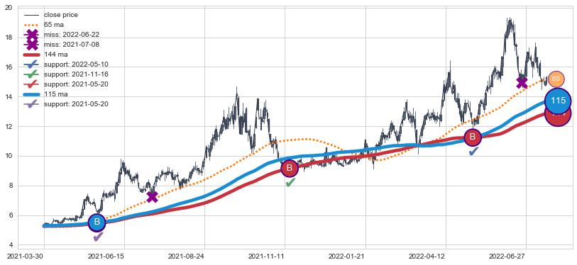 上涨趋势2021-03-30-2022-07-14,均线144, 115确认关键支撑3处