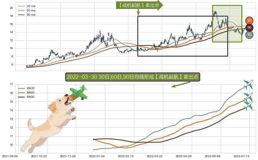 形态多维评估: ⚀ 2021-12-20日-2022-07-07日显现 30日-60日-90日均线 【战机起航】卖出点 看空信号,后市看跌,卖出