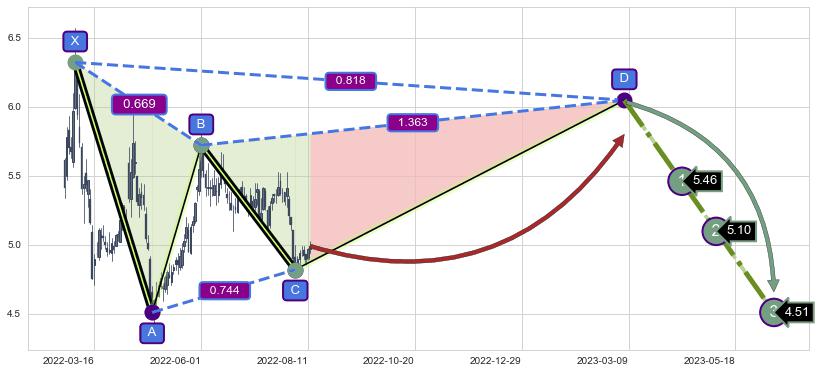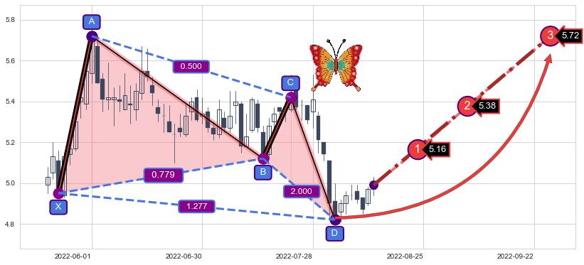 ➣ 已完成【蝴蝶】形态起点X: 2022-05-24, 终点D: 2022-08-03, 共51交易日