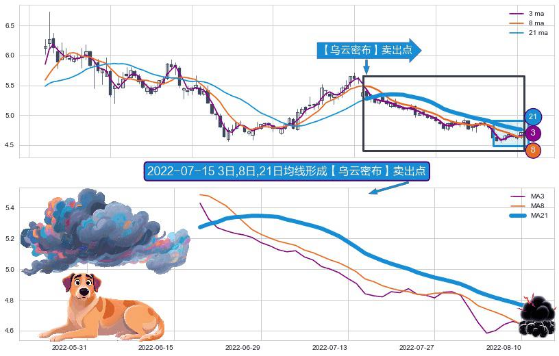形态多维评估: ⚀ 2022-06-20日-2022-08-11日显现 3日-8日-21日均线 【乌云密布】卖出点 看空信号,后市看跌,卖出