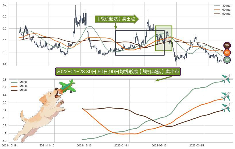 形态多维评估: ⚀ 2021-12-06日-2022-03-29日显现 30日-60日-90日均线 【战机起航】卖出点 看空信号,后市看跌,卖出
