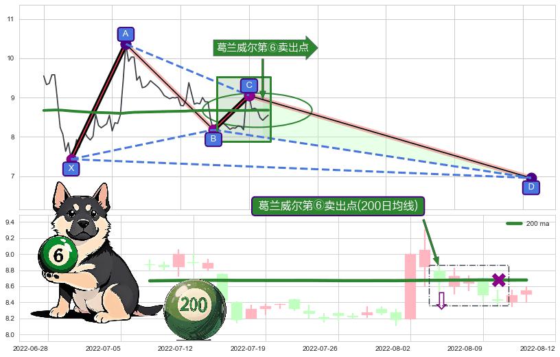 ➣ D点拟合预测价格6.95,距离最后交易收盘价格8.55相差 -18.67%