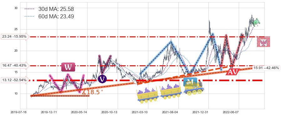 ♘ 支撑价格位16.47,可信任强度59.62%,距离最后交易2022-08-12形成的收盘价格27.65相差 -40.43%