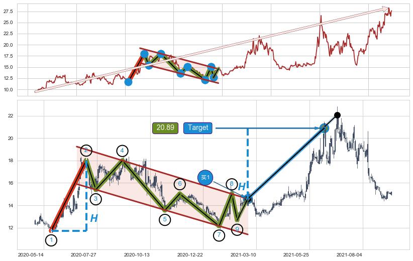 ➣ 最小中继整理涨幅→𝐇: 6.30 (𝐇旗杆的长度:旗杆起点→顶点)