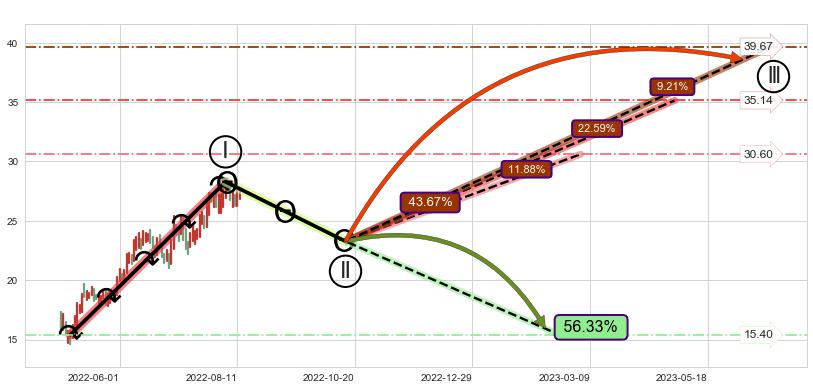 ♘ 支撑价格位14.79,可信任强度99.00%,距离最后交易2022-08-12形成的收盘价格27.65相差 -46.50%