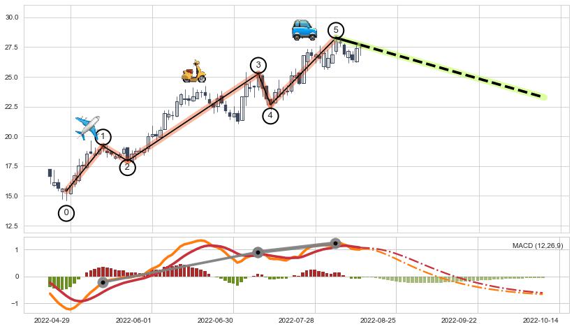 | 2 🅚:升势停顿 ➕ 🌊:波浪理论猜想上涨浪5已形成,猜想后续形成回调abc下跌(均值回复) ☞ 看空信号 ⇥ 【🅚线】交织【图形】⇥ 综合量化分数: 49 | > |