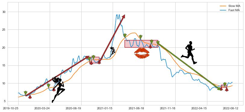 2021-08-19至2022-06-23 慢线与快线呈空头排列, 慢线与快线接触少,无缠绕