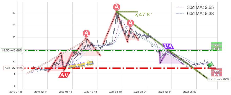 ♘ 阻力价格位14.50,可信任强度72.84%,距离最后交易2022-08-12形成的收盘价格10.16相差 +42.68%