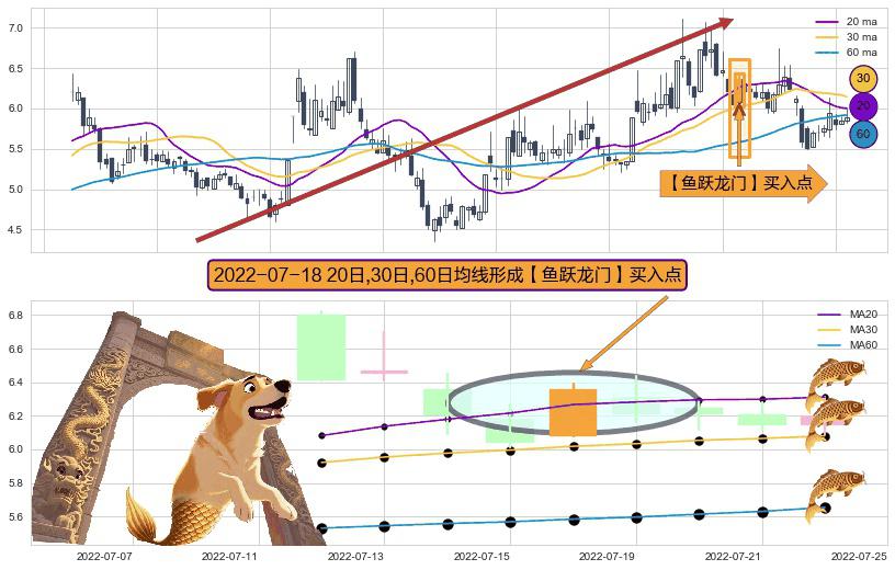 形态多维评估: ⚀ 2022-07-18日显现 20日-30日-60日均线 【鱼跃龙门】买入点 看多信号,后市看涨,买入