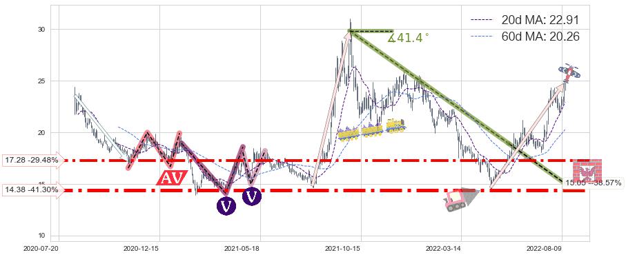 ♞ 20日均线:22.91,60日均线:20.26→ 快线>慢线
