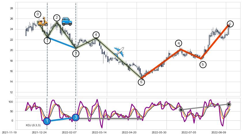 ➣ a,c调整浪KDJ走势未出现明显背离