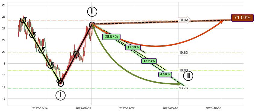 ➣ 大趋势循环浪继续向下概率28.97%