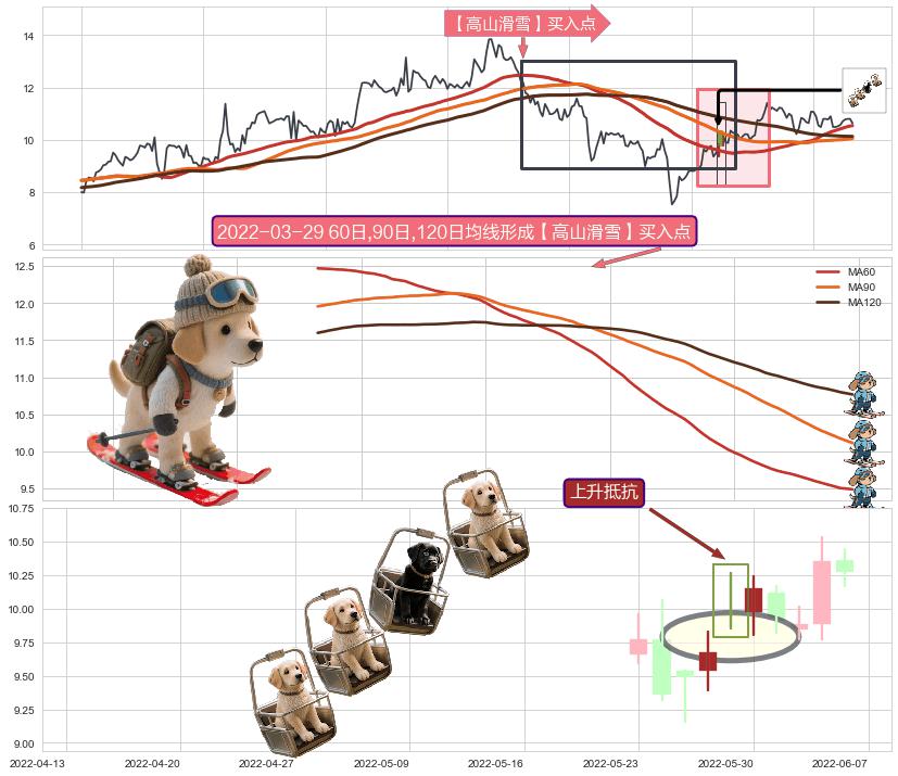 | 3 🅚:早晨之星(黎明之星) ➕ 🎢:【高山滑雪】买入点均线组合买入点信号形成后,猜想后续下行结束,持续反弹上涨(均值回复) ☞ 看多信号 ⇥ 【均线】交织【🅚线】⇥ 综合量化分数: 57 | > |