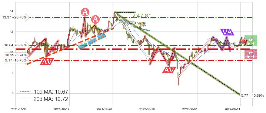 ➢ 【仅预测突破】最后价格:10.63与预测突破价格:10.84→【空间中等】后续最小【整理】第一目标价格→(2022-08-31: 11.42 )