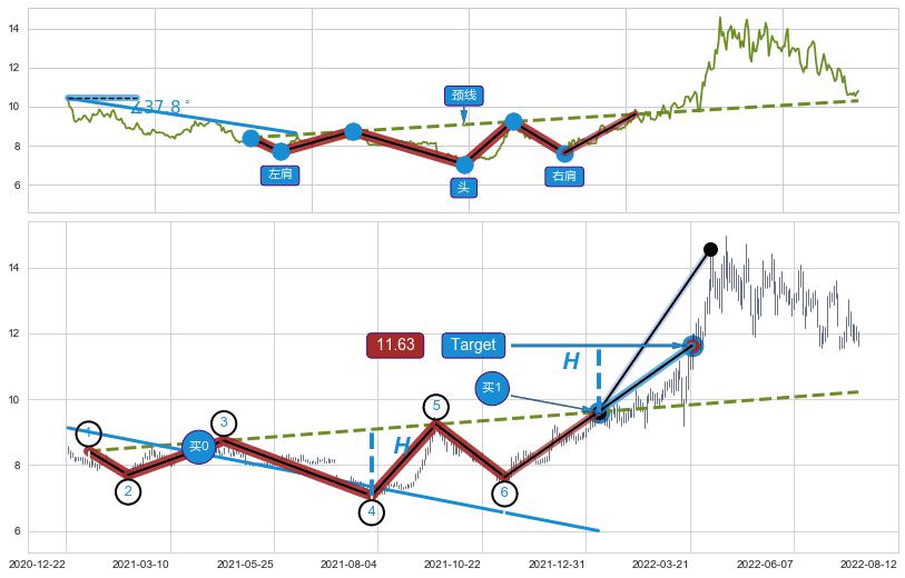 ➢ 【买1】: 激进型 买点 →(2022-01-11: 9.61 )形成突破头肩底【反转】形态