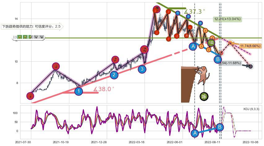 ♘ 阻力价格位14.44,可信任强度96.41%,距离最后交易2022-08-12形成的收盘价格10.80相差 +33.66%