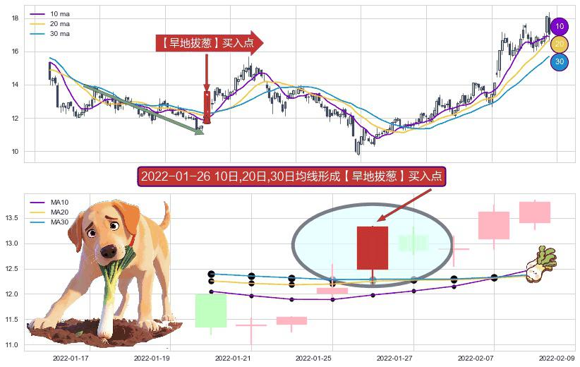 ⚀ 2022-01-26日显现 10日-20日-30日均线 【旱地拔葱】买入点 看多信号,后市看涨,买入