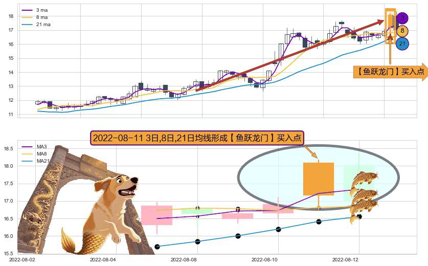 ⚀ 2022-08-11日显现 3日-8日-21日均线 【鱼跃龙门】买入点 看多信号,后市看涨,买入