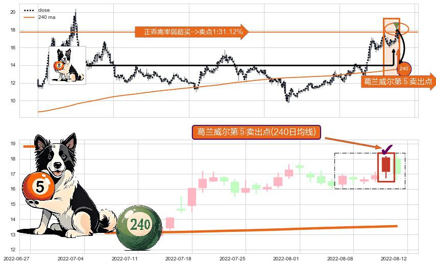 ⚀ 2022-08-11-日显现 葛兰威尔均线 240日均线 第⑤卖出点 上升趋势均值回复的短线回落信号,后市看跌,卖出信号