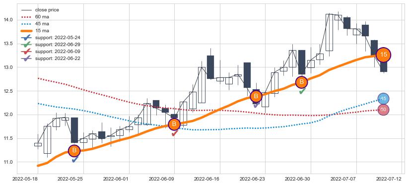 ⚂ 2022-01-20-日均线向下破位,2022-07-13-日重新上穿突破均线,均线支撑再次生效