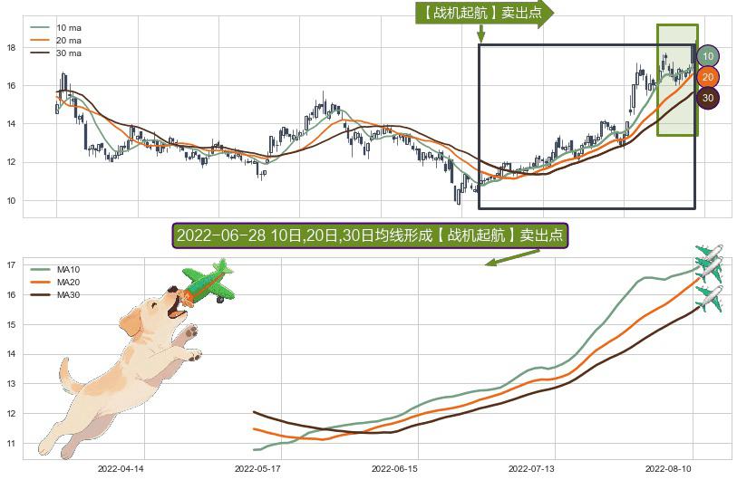 ⚀ 2022-05-11日-2022-08-11日显现 10日-20日-30日均线 【战机起航】卖出点 看空信号,后市看跌,卖出