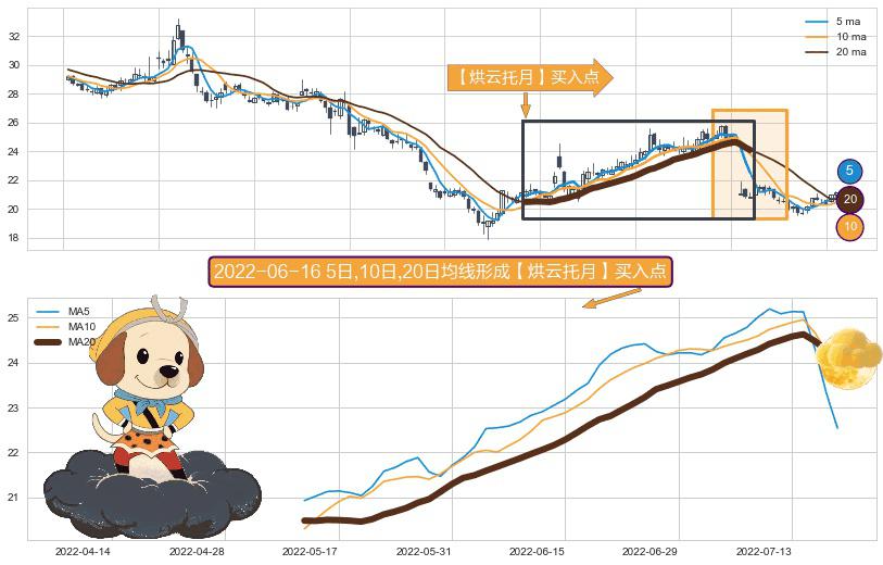 ⚀ 2022-05-12日-2022-07-19日显现 5日-10日-20日均线 【烘云托月】买入点 看多信号,后市看涨,买入
