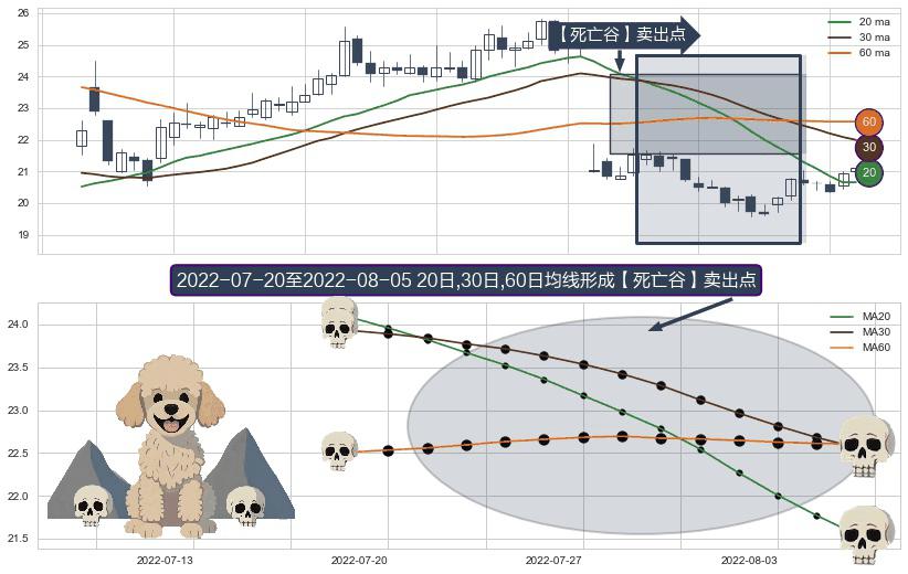 ⚀ 2022-07-21-日至2022-08-05-日显现 20日-30日-60日均线 【死亡谷】卖出点 看空信号,后市看跌,卖出
