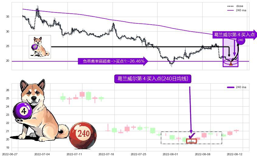 ⚀ 2022-08-03-日显现 葛兰威尔均线 240日均线 第④买入点 下降趋势均值回复的短线反弹信号,后市看涨,买进信号