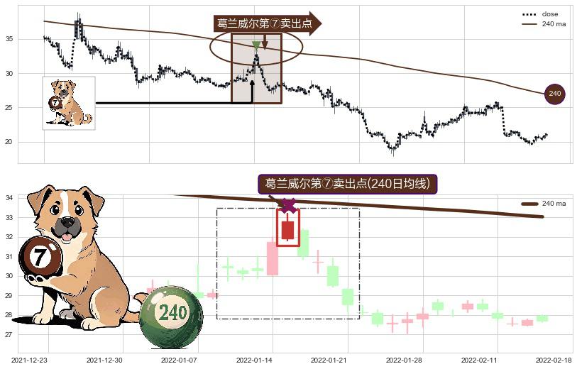 ⚀ 2022-01-17-日显现 葛兰威尔均线 240日均线 第⑦卖出点 下降趋势的中继信号,后市看跌,卖出信号