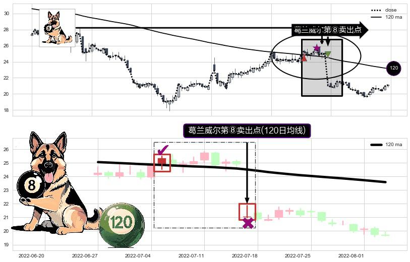 ⚀ 2022-07-15-日显现 葛兰威尔均线 120日均线 第⑧卖出点 下降趋势的中继信号,后市看跌,卖出信号