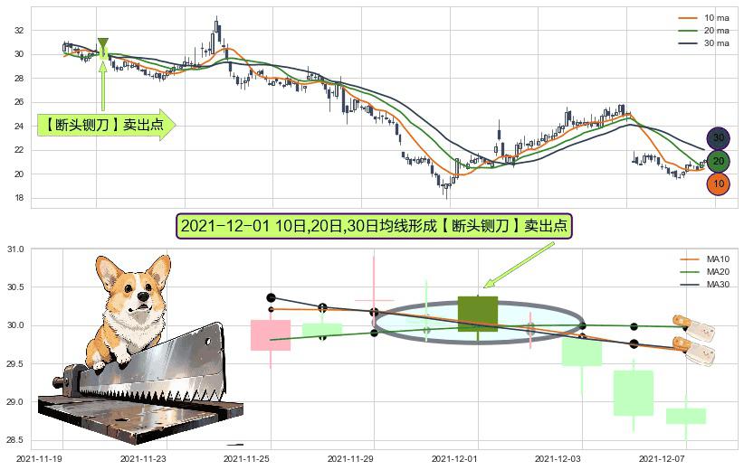 ⚀ 2021-12-01日显现 10日-20日-30日均线 【断头铡刀】卖出点 看空信号,后市看跌,卖出