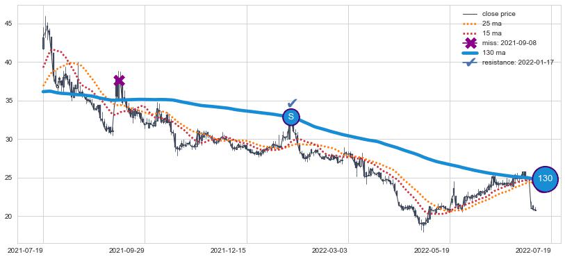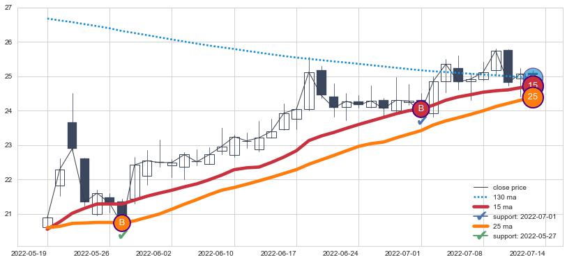 ⚂ 2022-07-05-日均线向上突破,2022-07-15-日重新下穿均线破位,均线阻力再次生效