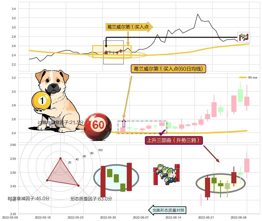 | 2 🅚:葛兰威尔第②买入点 ➕ 📐:降旗形向上突破击穿阻力位, 猜想持续拉升上涨,被突破的阻力位已变为支撑位 ☞ 看多信号 ⇥ 【均线】交织【图形】⇥ 综合量化分数: 55 | > |