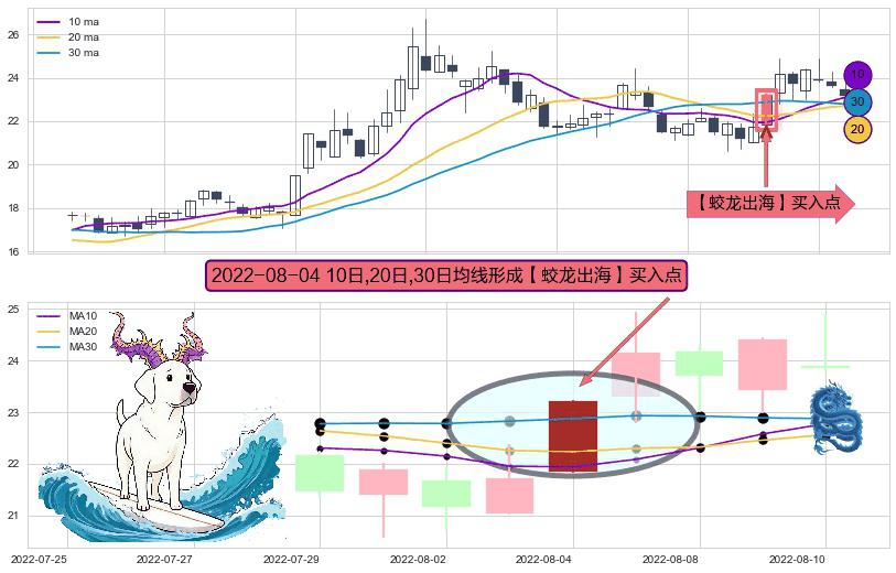 形态多维评估: ⚀ 2022-08-04日显现 10日-20日-30日均线 【蛟龙出海】买入点 看多信号,后市看涨,买入