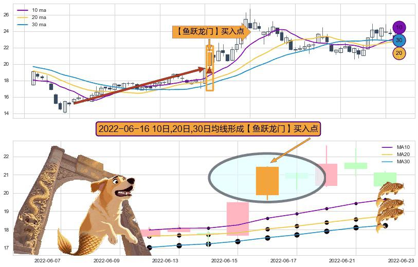 形态多维评估: ⚀ 2022-06-16日显现 10日-20日-30日均线 【鱼跃龙门】买入点 看多信号,后市看涨,买入