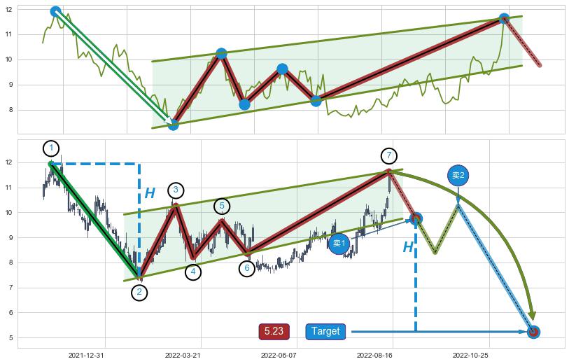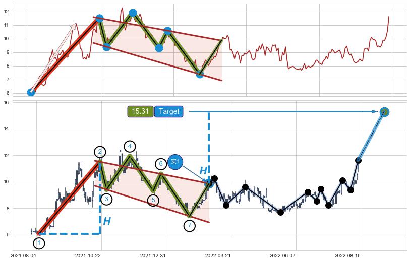 ➣ 最小中继整理涨幅→𝐇: 5.44 (𝐇旗杆的长度:旗杆起点→顶点)
