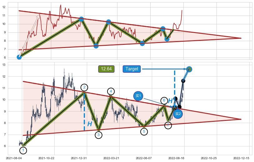 ➣ 【买2】: 保守型 买点 →(2022-08-02: 9.41 )形成上升【对称】三角形整理突破后的【回抽确认】