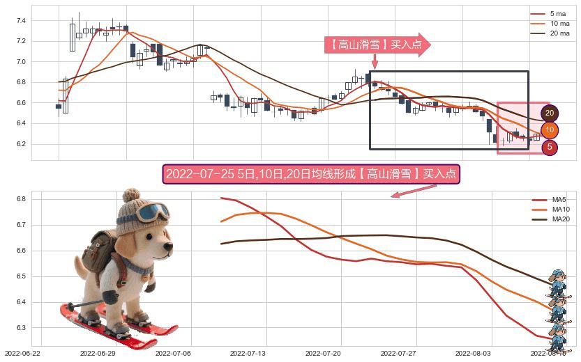 形态多维评估: ⚀ 2022-07-08日-2022-08-09日显现 5日-10日-20日均线 【高山滑雪】买入点 看多信号,后市看涨,买入