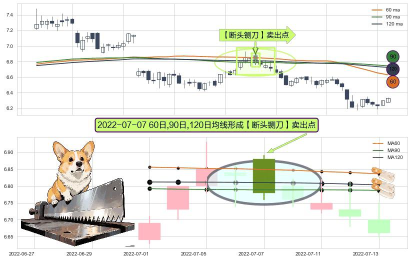 形态多维评估: ⚀ 2022-07-07日显现 60日-90日-120日均线 【断头铡刀】卖出点 看空信号,后市看跌,卖出