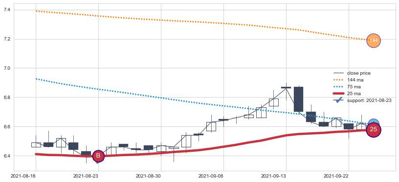 上涨趋势2021-08-16-2021-09-24,均线25确认关键支撑1处