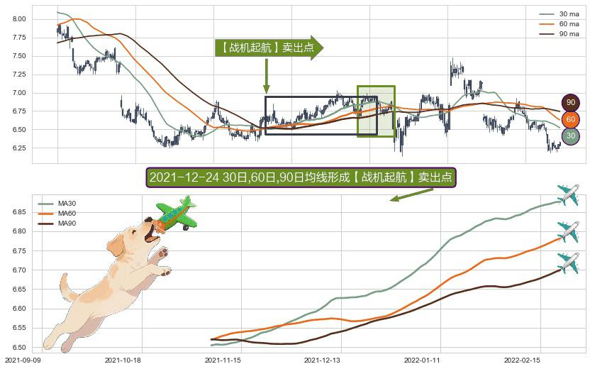 形态多维评估: ⚀ 2021-11-05日-2022-02-21日显现 30日-60日-90日均线 【战机起航】卖出点 看空信号,后市看跌,卖出