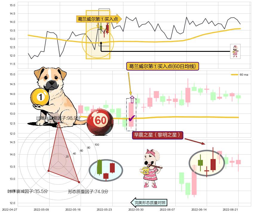 | 3 🅚:锤头线(锤子线) ➕ 🎢:葛兰威尔第①买入点买入点信号形成后,猜想后续下跌趋势反转上涨趋势(均值回复) ☞ 看多信号 ⇥ 【均线】交织【🅚线】⇥ 综合量化分数: 59 | > |