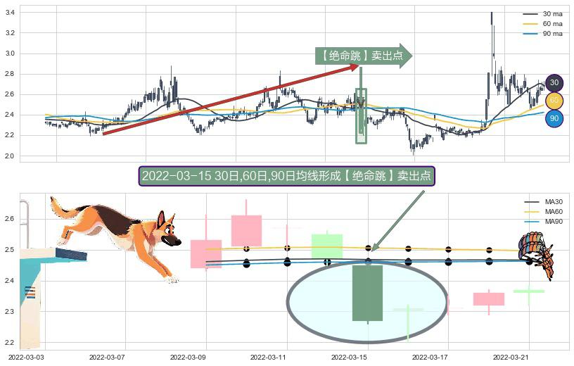 ⚀ 2022-03-15日显现 30日-60日-90日均线 【绝命跳】卖出点 看空信号,后市看跌,卖出