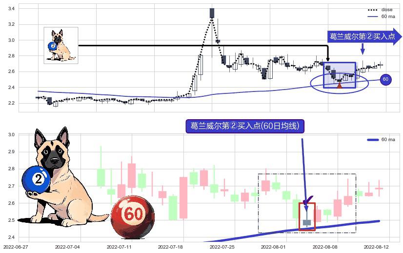 ⚀ 2022-08-03-日显现 葛兰威尔均线 60日均线 第②买入点 上升趋势的中继信号,后市看涨,买进信号