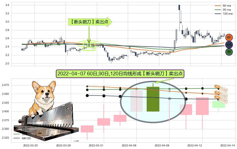⚀ 2022-04-07日显现 60日-90日-120日均线 【断头铡刀】卖出点 看空信号,后市看跌,卖出