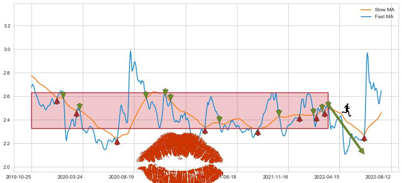 2022-03-14至2022-06-28 慢线与快线呈空头排列, 慢线与快线接触少,无缠绕