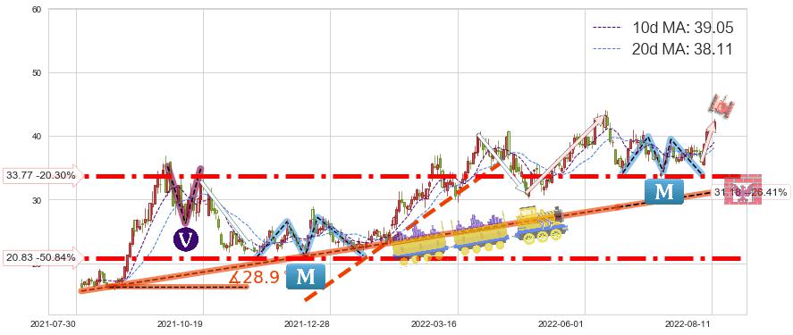➣ 2022-08-09到达第❷价格目标位置40.78