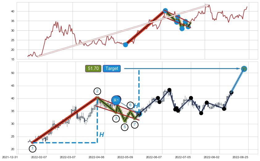 ➢ AI预测: 假定反转启动后, 第❷目标位置(2022-09-27, 37.90)